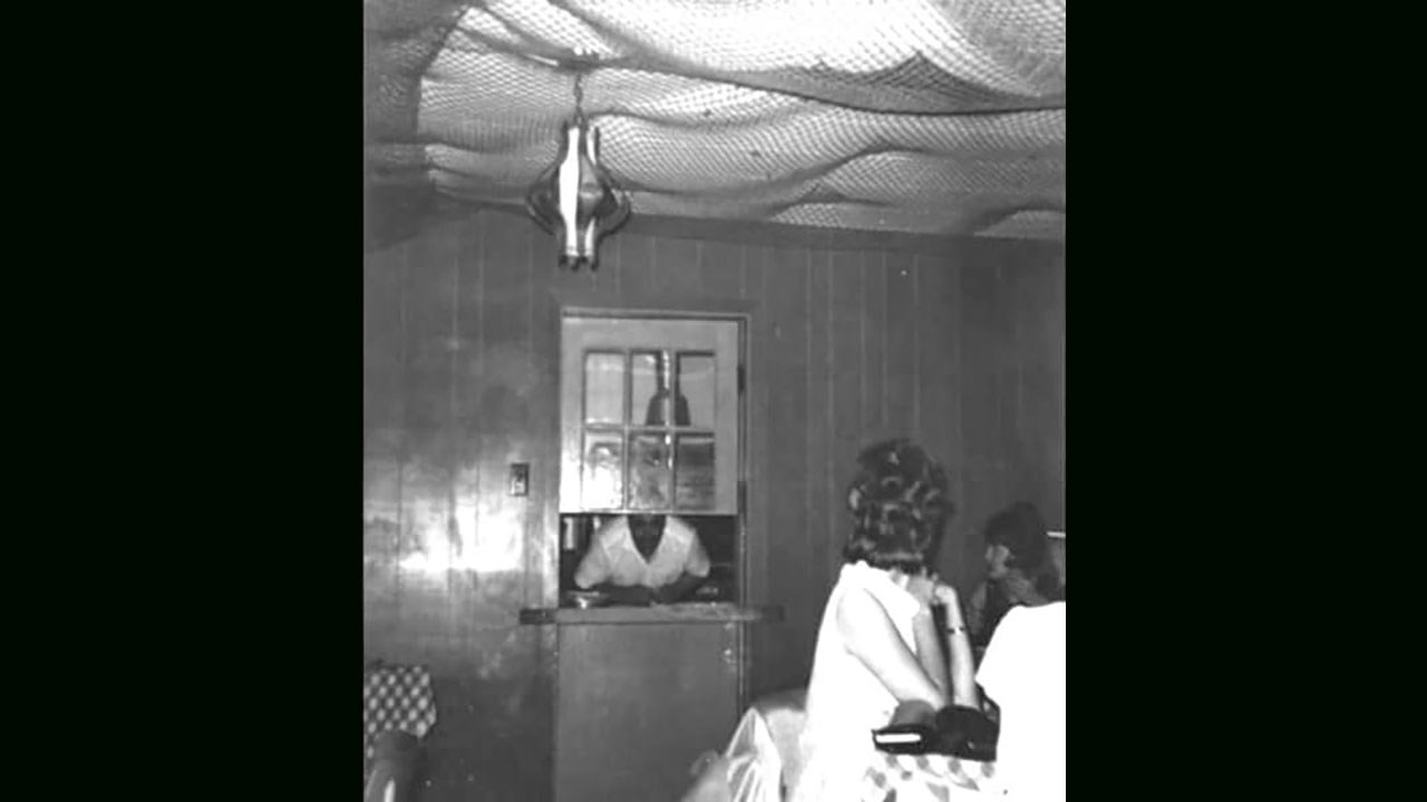 Vers 1968, il déménagea juste en face et installa son commerce au rez-de-chaussée, tandis que sa famille résidait au deuxième (photo 4). C'était un style vraiment unique comme local. Les tables étaient recouvertes de nappes à carreaux rouge et blanc (photo 5) sur lesquelles il y avait au centre une bouteille décorative de vin Chianti dans laquelle était insérée une chandelle, de sorte que la cire s'accumulait au fil des semaines autour de toute la bouteille dont le bas était décoré de paille, comme on le voit à la 6e photo. Décoration à la fois simple mais si originale. Et il y avait aussi des filets de pêche au plafond, créant une atmosphère unique (photo 7).